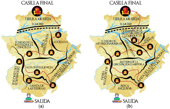 The project was presented to the students as a live board game, where the fiction conditioned their reality during this learning experience. To do this, a digital board was used, designed with the Microsoft Paint image editor program. The squares were the territories of Westeros. Each of these squares represented a theme of the subject where the students had to conduct a series of activities and challenges in a cooperative way to reach the final square and achieve the objective of the adventure (Figure 1).
