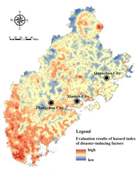 Assessment of the index of hazard of disaster-causing factors in Fujian Delta.