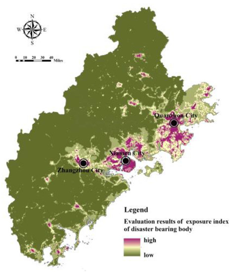 Assessment of the index of exposure of disaster-bearing bodies in Fujian Delta.