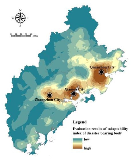 Assessment of the index of adaptability of disaster-bearing bodies in Fujian Delta.