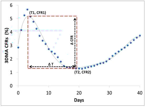 3.3. Characteristic Parameters of Actual 3DMA-CFR Curves for COVID-19 Epidemics