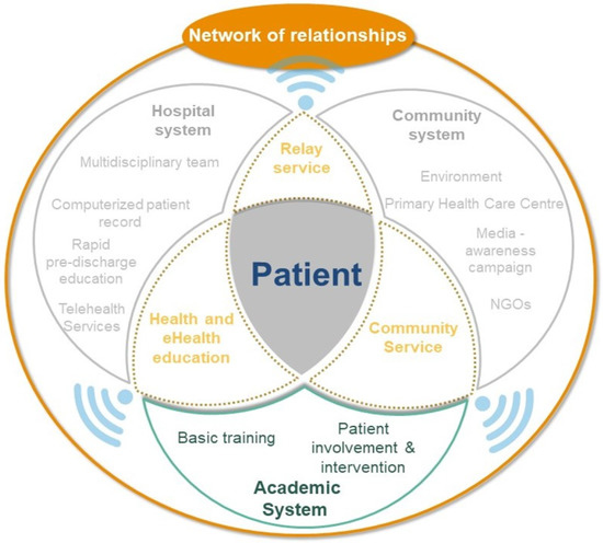 Based on the results of the research program Neith, a lack of government support emerged as a factor limiting the empowerment of patients with chronic diseases. Therefore, we proposed establishing a network of relationships that ensures collaborations with the patient as a basic component of a system promoting the empowerment of patients with chronic diseases, in a context of precariousness and permanent challenges and crises (economic, security, health, and political). We suggest implementing relay services to the community using telehealth to facilitate the link between the hospital and the community and incorporating community services within academic institutions, which could provide a service to the community while acting as a training ground for students within the university campus.