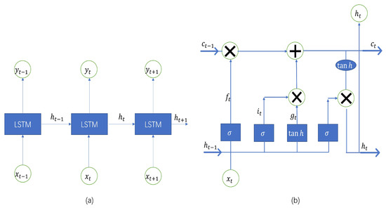 Architecture of long short-term memory [25]. (a) Architecture of long short-term memory. (b) Architecture of long short-term memory model memory unit.