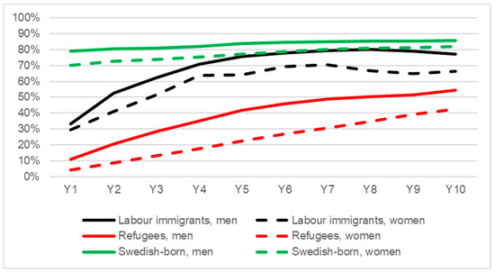 - Bevelander, P. The employment integration of immigrants in Sweden. J. Ethn. Migr. Stud. 1999, 25, 445–468. [Google Scholar] [CrossRef]
