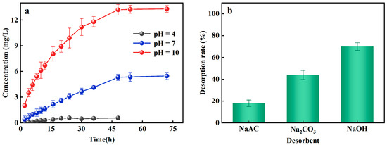 Effect factors on desorption of Al-doped ceramsite. (a): pH; (b): different desorbents.