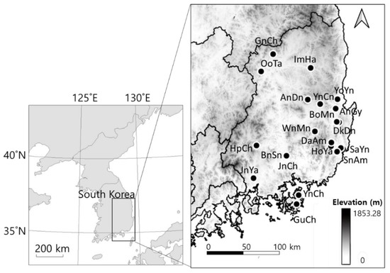 Location of study reservoirs in South Korea.