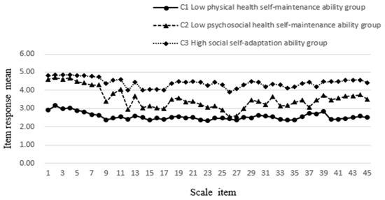 The 45-item response mean of the self-supporting ability scale of the three classes.