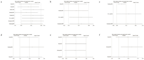 The results of the sensitivity analysis showed that the exclusion of any literature did not significantly affect the results of the meta-analyses (Figure 5).