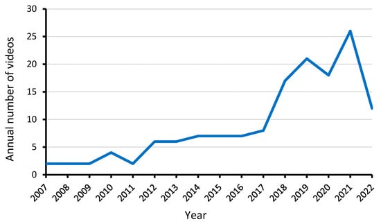 The frequency count of 145 videos uploaded on YouTube is shown in Figure 2. The oldest video was uploaded in March 2007, while the most recent was uploaded in September 2022. Over 70% (n = 100) of the videos had been uploaded in the past 5 years (2017–2022).