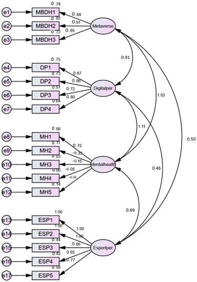 The questionnaires were formulated using the five-point Likert scale in this research. It accurately collects data from a vast population, particularly with high-sensitive issues. For the data collection, survey methodology was used. The survey-based methodology is considered appropriate for collecting data from the respondents because it is convenient to disperse and collect the data for analysis. Thus, the research taught the survey-based methodology for collecting data. The decided scales were chosen from additional research, with a careful analysis regarding their reliability and face validity in the previous research. A broad study of the literature with the relevant constructs was held before the establishment of the measuring items. A request to four experts was made to assess the validity of the content of the questionnaires to ensure that it was convenient and easily understandable. The results were then included and added based on the Likert scale ranging from 1 to 5, where one was referred to as strongly disagree, and five meant strongly agree. The option 2 was referred to as disagree, 3 indicated neutral, and 4 referred to agree. For the measurement of metaverse-based digital healthcare, we used a three items scale developed by Tresp et al. [69] (e.g., 1. I know how to use the internet for the health-related questions); the digital personality was measured with the help of a 4-item scale that was supported with good reliability and validity in the past research by Jackson [70] (e.g., I own a different personality virtually). To measure mental health, we relied on a 5-item scale proposed by Baker and Schulberg [71], which also had rugged reliability in the past research (e.g., Did you recently felt to take care of your daily chores?). To measure eSport performance, a 5-item scale [72] was used (e.g., I need a sport experienced trainer that could help me fine-tune my eSport performance).