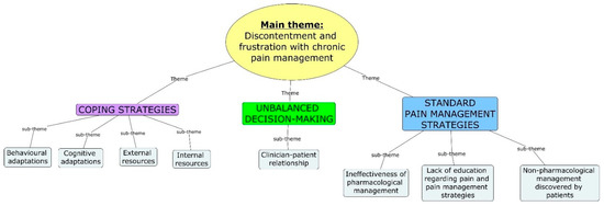 Figure 1 is a representation of the main theme, the themes and subthemes. The main theme that emerged from the interviews related to the discontentment and frustration participants experience with chronic pain management. The results suggest that participants are experiencing an experiential journey of learning to live with chronic pain. In addition, current pain regimes are suboptimal at best, underpinned by the lack of clarity and mutually agreed plans to mitigate and eradicate pain. There is a need for improved therapeutic alliance between the clinician and patient, to help ensure shared decision-making on treatments, which impact on the patient. Through this journey, patients have developed coping strategies, which are mere means of survival, characterised by reduced functioning frameworks, spontaneity and a need for support.