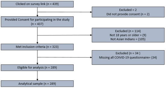 This study used a cross-sectional study design and convenience sampling methods. Using Qualtrics, an online survey was created. Participants had to be 18 years or older and self-identify as Asian Indians. Participants were categorized as Asian Indians if they selected one of the following options: Asian Indians, born in the Indian subcontinent, have origins in the Indian subcontinent, or their parents are from the Indian subcontinent. Flyers and links to the survey were posted in temples, university bulletin boards, and other public places. Institutional review boards at West Virginia University and the University of North Texas approved the survey. The survey was conducted between May 2021 and July 2021.