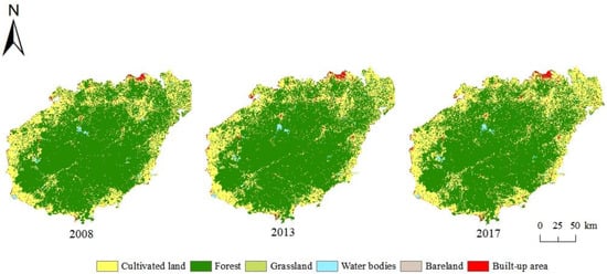 - From 2008 to 2017, the overall land use variation on Hainan Island showed a trend of cultivated land and built-up area increasing and forest land decreasing. The cultivated land in the surrounding coastal areas continued to expand, crowding out forest land and reducing its area. The growth of built-up areas in Haikou City and Sanya City was more dramatic.
