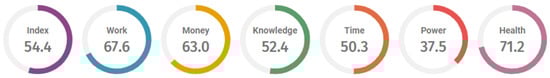 Thirty years after the collapse of socialism, Romania has 19.5 million inhabitants, 51.38% of which are women. However, in general (as shown in Figure 1), Romania ranks 26th according to the gender equality index []. Furthermore, the country’s gender gap in terms of access to paid employment is one of the largest in the EU.