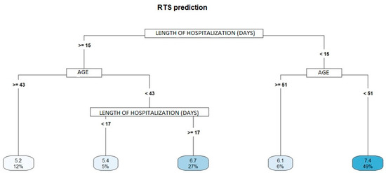 Decision tree to identify the predictive variables of the RTS (mortality).