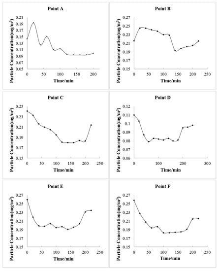 The following supporting information can be downloaded at: https://www.mdpi.com/article/10.3390/ijerph20010865/s1. Table S1: The changes of particle concentration over time at PM2.5, PM10, 0.3 μm, 0.5 μm, 1 μm, 2.5 μm, 5 μm and 10 μm in different sites.