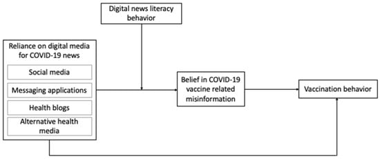In sum, we find that there is a lack of research in current literature to (1) understand the mediating role of belief in vaccine misinformation in the relationship between the use of multiple digital media, especially health-specific media, for COVID-19 information and vaccination behavior, and (2) the moderating role of news literacy behavior on this mediated path. This study offers a conceptual model that explains how exposure to different digital media is linked to vaccination via belief in misinformation. We also point out this mediated mechanism can be moderated by news literacy behavior. Further, we compare empirical evidence from two distinct societies (the U.S. vs. South Korea) to see if the model holds in different contexts.