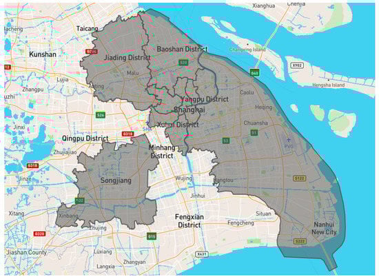 For pavement data, we collected road information in March and April 2019, covering 11 districts in Shanghai, China (see Figure 5). The road information mainly includes road names, districts, pavement roughness, and road profiles. The road information was detected by advanced onboard sensors, including LiDAR, accelerometers, and GPS, under the operation of manual vehicles. The resolution of detected road profiles detected by LiDAR was 0.25 m. Based on unexpected vibration detected by accelerometers, the potential damage was located by GPS and captured using wavelet analysis [7]. We sampled 110 rough pavements in this dataset to form a rough pavement dataset for model training and testing.