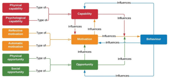 - West, R.; Michie, S. A Brief Introduction to the COM-B Model of Behaviour and the PRIME Theory of Motivation [V1]; Qeios: London, UK, 2020. [Google Scholar]