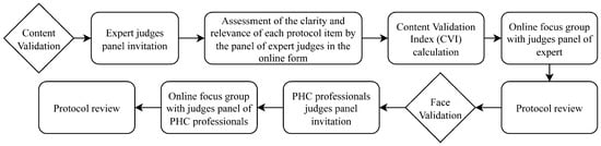 Flowchart of the content and face validation steps. PHC: Primary Health Care.