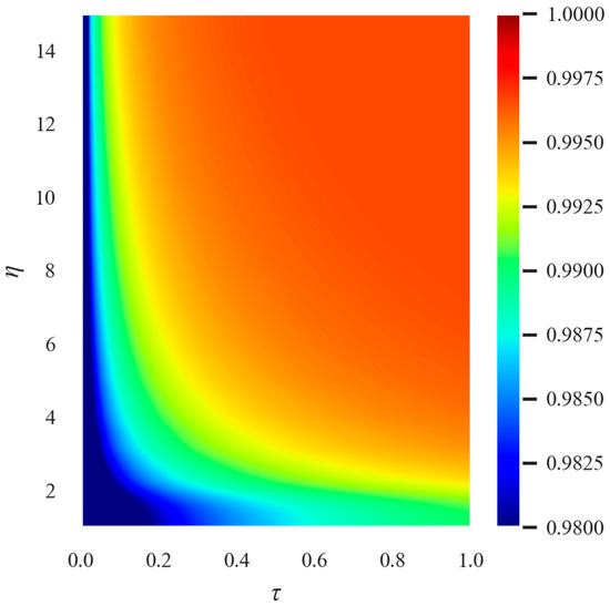 (iii): Optimal conversion rate and allocation ratio combinations. When the additional medical resources are constant, this section investigates the effects of various combinations of allocation ratios and conversion rates on containing the epidemic’s spread. We specifically set , and monitor the proportion of the susceptible population that is still present once the outbreak has settled using various combinations of conversion and allocation ratios. The best combination region is determined by comparing the results of various combinations, and we anticipate that the optimal combination zone will be the region that complies with Equation (5).