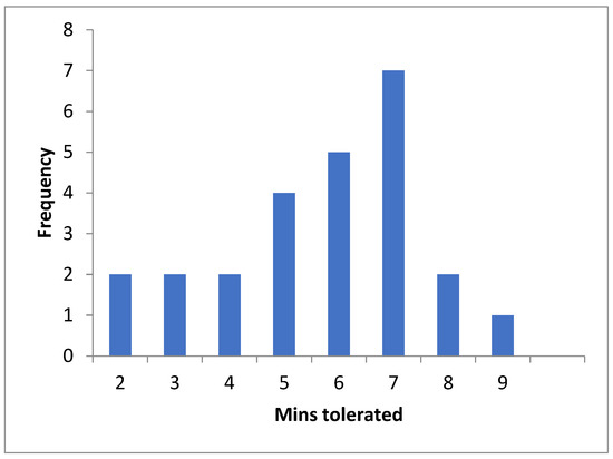 Frequency of number of minutes of NLT tolerated for incomplete NLT.