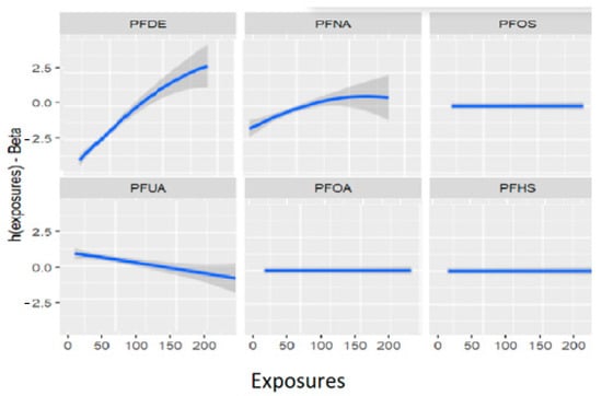 | PFDE N = 21,597 | PFNA N = 22,405 | PFOS N = 23,200 | PFUA N = 20,856 | PFOA N = 23,482 | PFHS N = 19,952 | |