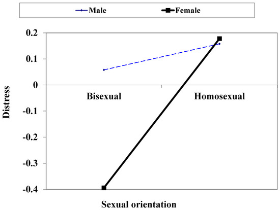 Additionally, differences due to background characteristics are explicable with the stress–vulnerability model. In the first place, the average homosexual person had greater distress than the bisexual person, possibly because of the former’s lower flexibility when coping with stressful demands about sexuality [82]. The average bisexual person is more sexually flexible and thus more effective in avoiding social stress. This difference between a homosexual and bisexual person in distress has been notable [47]. Similarly, the average LGB woman had lower distress than the average LGB man probably because of the former’s better fulfillment of social demand and thus ability to avoid its stress [83]. The average LGB woman and the facets of her sexuality, such as monogamy and sexual flexibility, tend to fit social norms and evade social stress better than her male counterpart [84]. This is particularly the case for bisexual women, who can maintain sexual relationships with men and thus conform to the heterosexual social norm (see Figure 2). In addition, distress has been shown to be higher in those with a higher education [49]. This difference may be attributable to higher aspiration, the consequent discrepancy between their situation and reality, and thus stress [47]. A further reason in the Chinese context may be that education, conveying the orthodox cultural norm there, is less supportive of and thus more distressing to the LGB person [16].