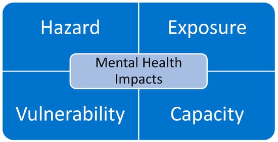 | 13. Matthews et al. (2020) [29] | Cross-sectional survey examining associations between flood impact, social capital and psychological distress in diverse rural community | Post-disaster (floods) | Empirical study | Hazard Exposure Vulnerability Capacity Disaster MH impacts | Individual Community Organization Sector National/societal Regional Global | Understanding DMH risks DMH impact assessment | 1 | 5 |