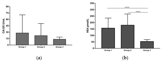 - Medeiros, L.R.; Rosa, D.D.; da Rosa, M.I.; Bozzetti, M.C. Accuracy of CA 125 in the diagnosis of ovarian tumors: A quantitative systematic review. Eur. J. Obstet. Gynecol. Reprod. Biol. 2009, 142, 99–105. [Google Scholar] [CrossRef] [PubMed]