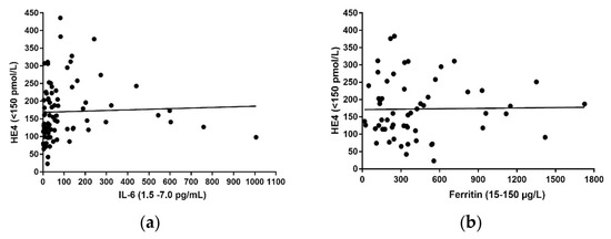 3.2. Correlations between HE4 vs. IL-6 and vs. Ferritin