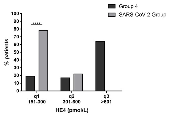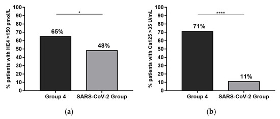 3.3. Comparison of HE4 and CA125 Pathological Values in Ovarian Cancer Patients and in SARS-CoV-2 Group