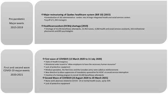 - Institut National de Santé Publique du Québec (INSPQ). Ligne du Temps COVID-19 AU Québec. 2022. Available online: https://www.inspq.qc.ca/covid-19/donnees/ligne-du-temps (accessed on 27 May 2023).