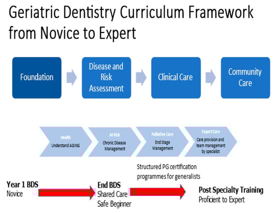 - Nilsson, A.; Young, L.; Glass, B.; Lee, A. Gerodontology in the dental school curriculum: A scoping review. Gerodontology 2021, 38, 325–337. [Google Scholar] [CrossRef]