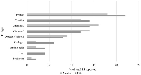 Most reported FSs used by elite and amateur athletes in the survey cohort.