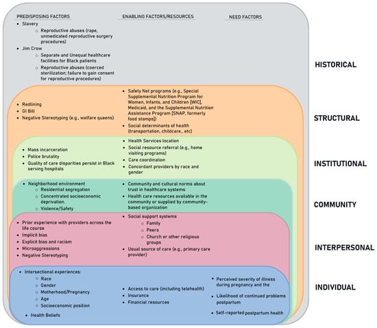 - Treder, K.; White, K.O.; Woodhams, E.; Pancholi, R.; Yinusa-Nyahkoon, L. Racism and the Reproductive Health Experiences of U.S.-Born Black Women. Obstet. Gynecol. 2022, 139, 407–416. [Google Scholar] [CrossRef]