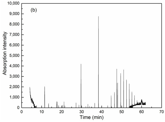 GC-MS analysis results for wastewater before (a) and after (b) coagulation.