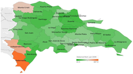 From 2000 to 2017, the global maternal mortality ratio declined by 38%, representing a drop from 342 deaths to 211 deaths per 100,000 births (live births), which translates into an average annual rate of reduction of 2.9% [1]. While this figure represents a global decline in MMR, the improvement in maternal health has occurred unevenly, with the greatest burden of maternal deaths (94%) occurring in developing countries [1]. The MMR of the Dominican Republic (DR) has increased over the period between 2000 and 2017, rising from 80 in 2000 to 95 in 2017 [3,4].