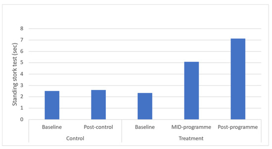 Effects of a community-based mind–body (Tae-Bo) physical exercise programme on standing stork balance in rural black overweight and obese women with manifest risk factors for multimorbidity. Legend: sec: seconds.