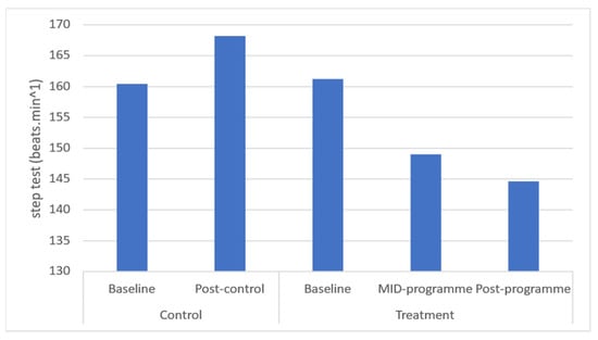 Effects of a community-based mind–body (Tae-Bo) physical exercise programme on step test performance in rural black overweight and obese women with manifest risk factors for multimorbidity. Legend: beats.min−1: beats per minute.