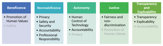 - Floridi, L.; Cowls, J.; Beltrametti, M.; Chatila, R.; Chazerand, P.; Dignum, V.; Luetge, C.; Madelin, R.; Pagallo, U.; Rossi, F.; et al. AI4People—An ethical framework for a good AI society: Opportunities, risks, principles, and recommendations. Minds Mach. 2018, 28, 689–707. [Google Scholar] [CrossRef]
