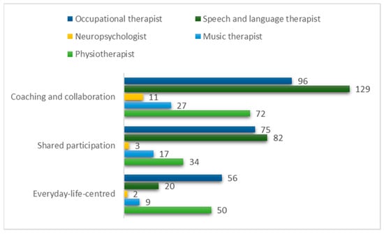The focus of this survey was on outpatient therapy with intensive medical rehabilitation clients in Finland. Kela provides access to different types of therapies for intensive medical rehabilitation clients. Eligible clients must have a diagnosed illness or impairment that significantly limits their functioning and complicates their daily lives []. The context of this study was the first wave of the COVID-19 pandemic, a time when professionals were taking up TR with quite limited experience with it. The first part of the study investigates and compares the uptake of TR in Finland amongst different rehabilitation professions during the COVID-19 pandemic [].