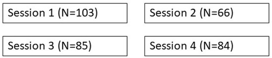 The study population comprised a convenience sample of all the participants (excluding presenters) who attended any of the four sessions. Study population numbers by session are shown in Figure 1.