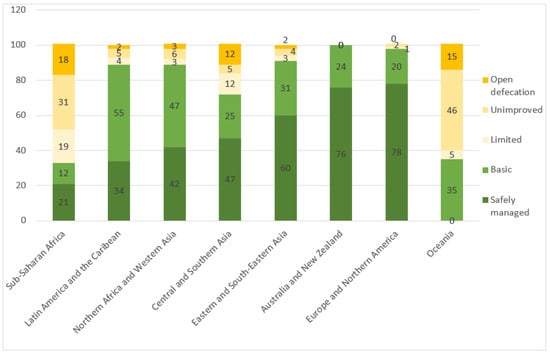 - UNICEF. United Nations Children’s Fund & Who. World Health Organization. Progress on Household Drinking Water, Sanitation and Hygiene 2000–2020: FIVE YEARS INTO THE SDGs. New York, 2021. Available online: https://www.who.int/publications/i/item/9789240030848 (accessed on 14 May 2023).