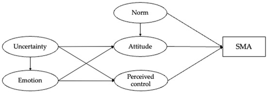 Previous research suggests uncertainty as an antecedent construct that predicts one’s attitude, subjective norm, and perceived behavioral control over the behavior, which, in turn, predicts one’s behavioral intention [53,54]. In the context of parental SMA for children, it is likely that the increased uncertainty during children’s illness could impact parents’ medical decision-making for their children. We hypothesize that parents’ uncertainty in children’s illness is an antecedent variable that is associated with attitudes and perceived behavioral control over self-medicating children with antibiotics, which could, in turn, influence their actual SMA behavior.
