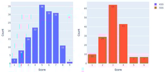 Figure 2 demonstrates the distribution of KSS and SSS scores in the dataset (N = 160).