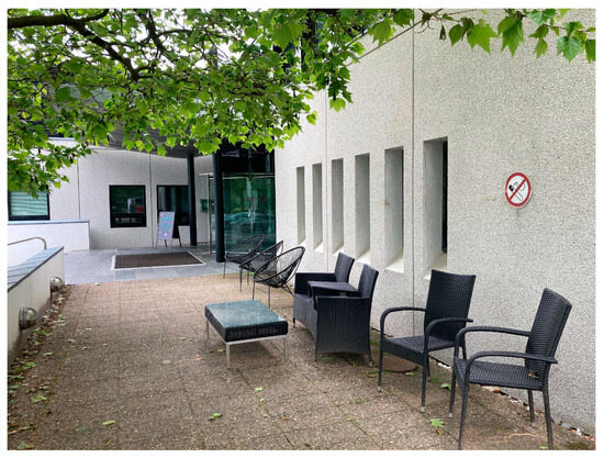 In one way or another, interviewees talked about the importance of it being easy to take work outside (1, 2, 3, 4, 5a, 5b, 6a). To provide an example, Interviewee 3 emphasised the need for simplicity and minimal planning in relation to working outdoors. Interviewees mentioned that the successful solutions included those that were quick and easy, such as sitting out on a terrace to read, eat lunch outside, or take a mobile phone call outdoors (1, 2, 3, 4, 5a, 5b, 6a) (see Figure 3). Among other things, it was mentioned that it made things a lot easier if the outdoor area was close by: “When the phone rings, I put on my headset and then I just open the door and walk straight out onto the terrace—so it’s easy!” (5a). In this context, Interviewee 5a pointed out that a paved surface was a deciding factor for her because then she could go outside irrespective of which footwear she was wearing.