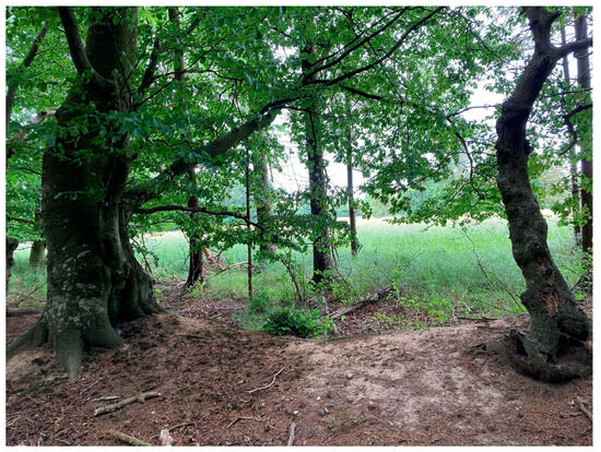 Interviewee 2′s example of a good place to stay. Here, she can sit on a small embankment protected by the forest’s trees while also having a view of a meadow.