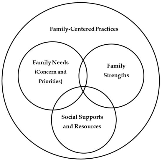 A number of meta-analyses include findings regarding the relationships between the family systems intervention practices and parenting quality [,,,,,]. A large number of unmet family needs are related to more negative parenting beliefs. In contrast, family-centered practices, family resources, social supports, and family strengths were associated with both increased parental involvement in their children’s learning and education and more positive parenting practices.