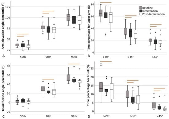 - Hansson, G.Å.; Arvidsson, I.; Ohlsson, K.; Nordander, C.; Mathiassen, S.; Skerfving, S.; Balogh, I. Precision of measurements of physical workload during standardised manual handling. Part II: Inclinometry of head, upper back, neck and upper arms. J. Electromyogr. Kinesiol. 2006, 16, 125–136. [Google Scholar] [CrossRef]